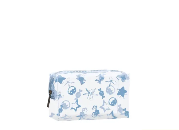 کیف آرایش ساده طلق و چرم آبی با کد CB003 برند vergen
