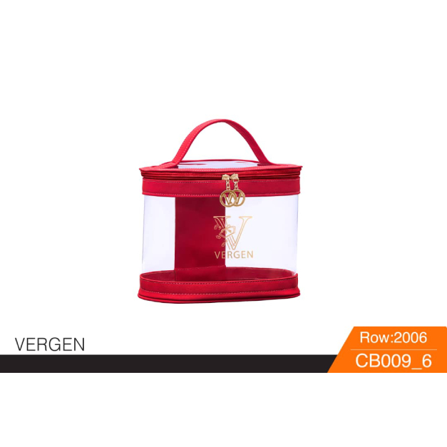 کیف آرایش ساده طلق و چرم قرمز با کد CB003 برند vergen