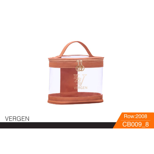 کیف آرایش ساده طلق و چرم نسکافه ای با کد CB003 برند vergen